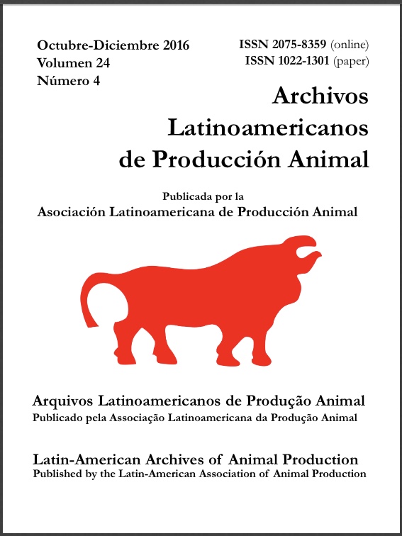 A trial was conducted with 41 alpacas (22 males and 19 females) during the years 2009 and 2010 in the rural community of Santo Doming de Cachi in the Junín region of Peru, to estimate components of phenotypic variance, phenotypic correlations and repeatability of the average fiber diameter (AFD), coefficient of variation of same (CVAFD), dirty fleece weight (DFW), fiber curvature (FC), and staple length (SL). Animals born in 2008 were sheared annually, along with measurement of each of the characters under study. Samples of fiber were taken at midside of each animal. The results show that alpacas of the study area produce fleece of adequate weight and fibers of the desired fineness, with low CVAFD and that the yearly increase in staple length meets the requirements of the textile industry. Animal age had an effect on AFD, FC and SL, but not on CVAFD nor DFW, while sex affected only DFW and SL. The genetic + permanent environmental variances (VG + VAP) of ADF and FC were greater than the temporary environmental variances (VAT), while the opposite was true for CVAFD, DFW, and SL variances. The phenotypic correlations among the five characters studied were mostly on the order of 0.28, some being negative and others positive, while the two correlations of AFD with CVAFD and CVAFD with FC were not significant. The negative correlation of AFD with FC was the one of highest magnitude. As for repeatability estimates, the highest was that of AFD (0.71 ± 0. 08), and the lowest that of SL (0.29 ± 0.15).
